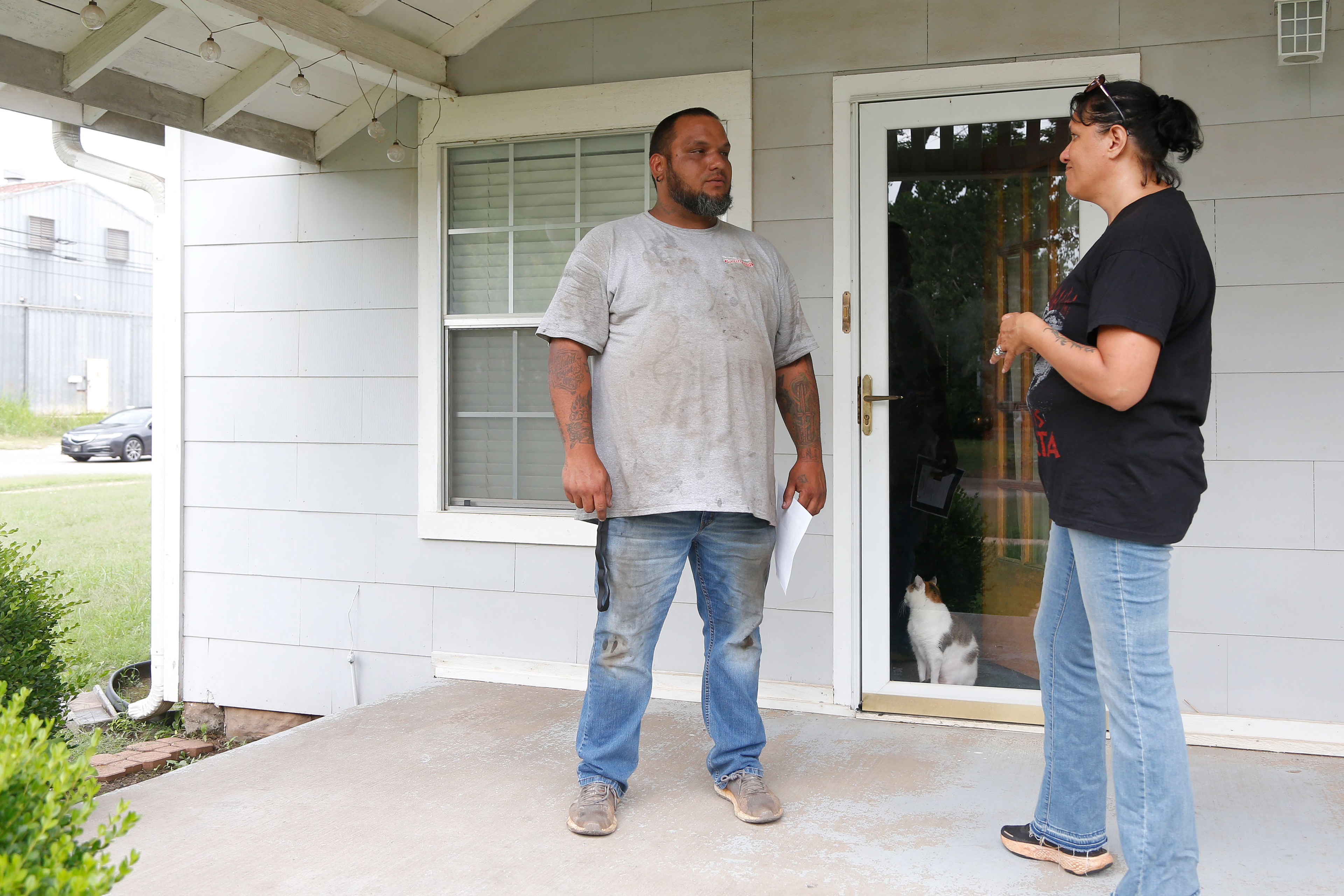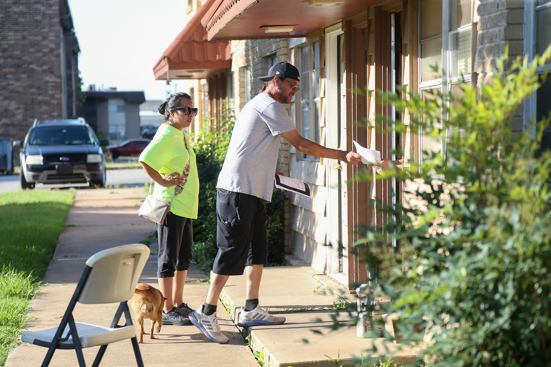 Eliza Botone and Jon Henson hand out fliers for Jackson Yearby, whom went missing in January Thursday, July 6, 2023 Stillwater, OK